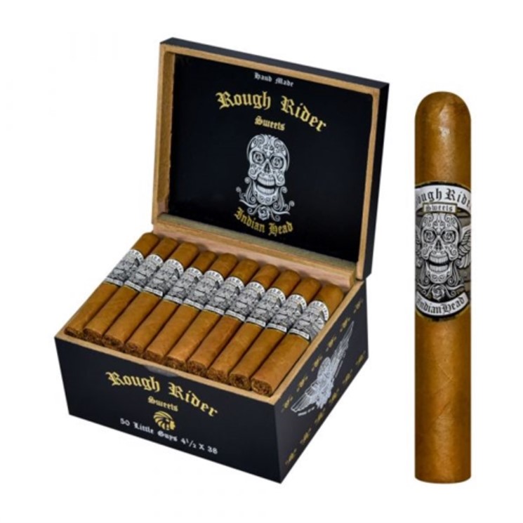 The Rough Rider Sweets Connecticut is sure to will please the palate of sweet cigar fans. A medium-strength stick, the Rough Rider Sweets features a Claro Ecuadorian Connecticut wrapper that is draped over a Piloto Cubano binder, and Criollo 98 and Piloto Cubano long-filler tobaccos. Medium-bodied, the Rough Rider Sweets provides a creamy blend of honey, sweetness, with a hint of cedar.